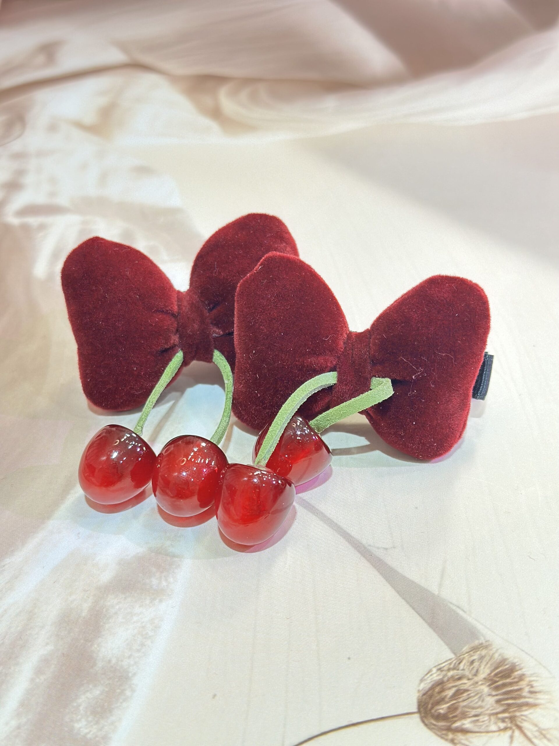 Rich, soft, and effortlessly elegant, these velvet cherry clips are designed for a more refined and premium look. The plush texture paired with glossy cherry accents creates a luxurious feel while remaining playful and age-appropriate.
