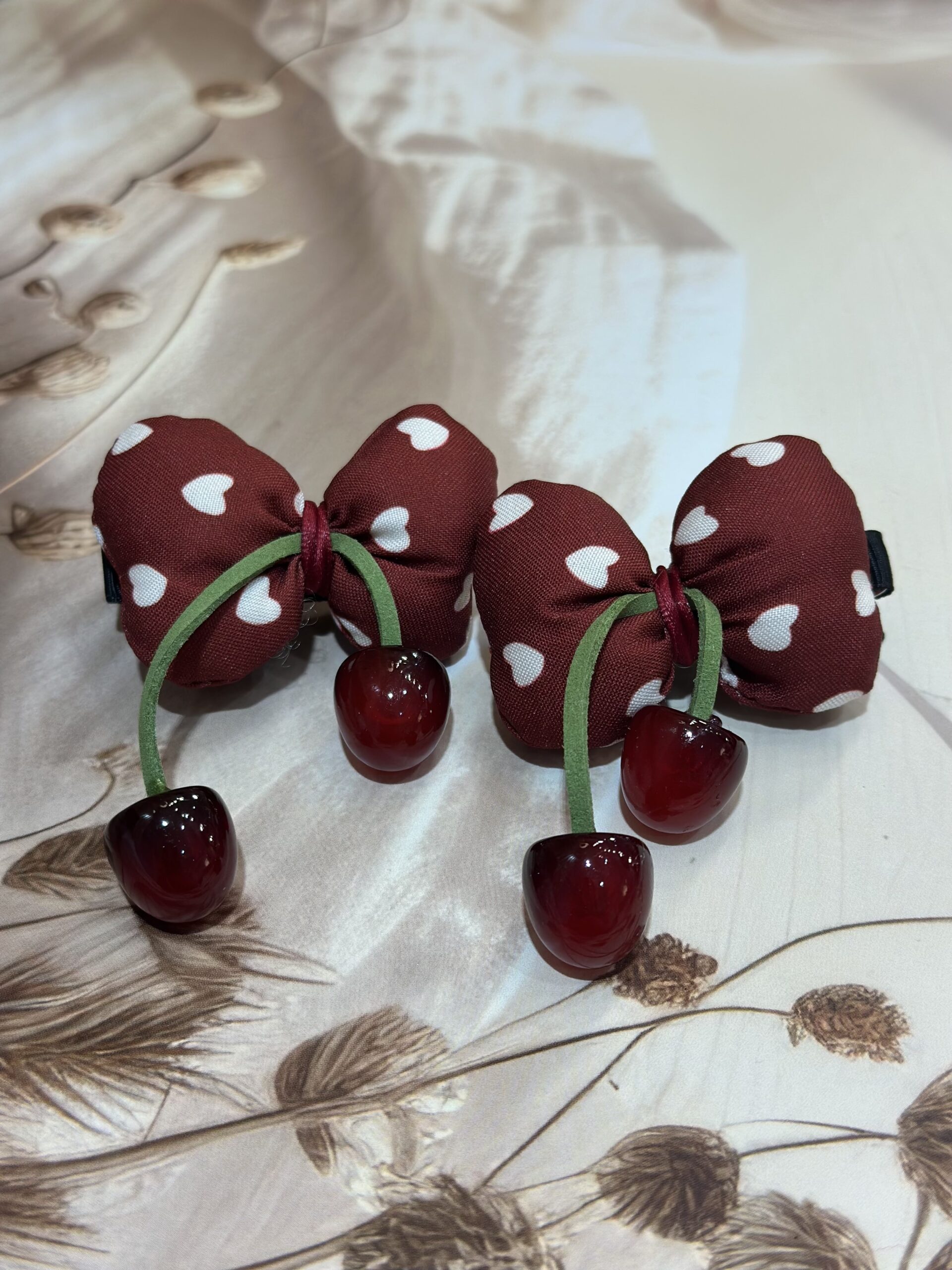 Sweet, playful, and full of personality, these cherry bow clips feature a soft heart print that adds a cute and lively touch. Paired with glossy cherry details, they create the perfect balance of fun and charm. Designed for comfort and easy wear, they’re perfect for adding a little extra love to everyday styling.