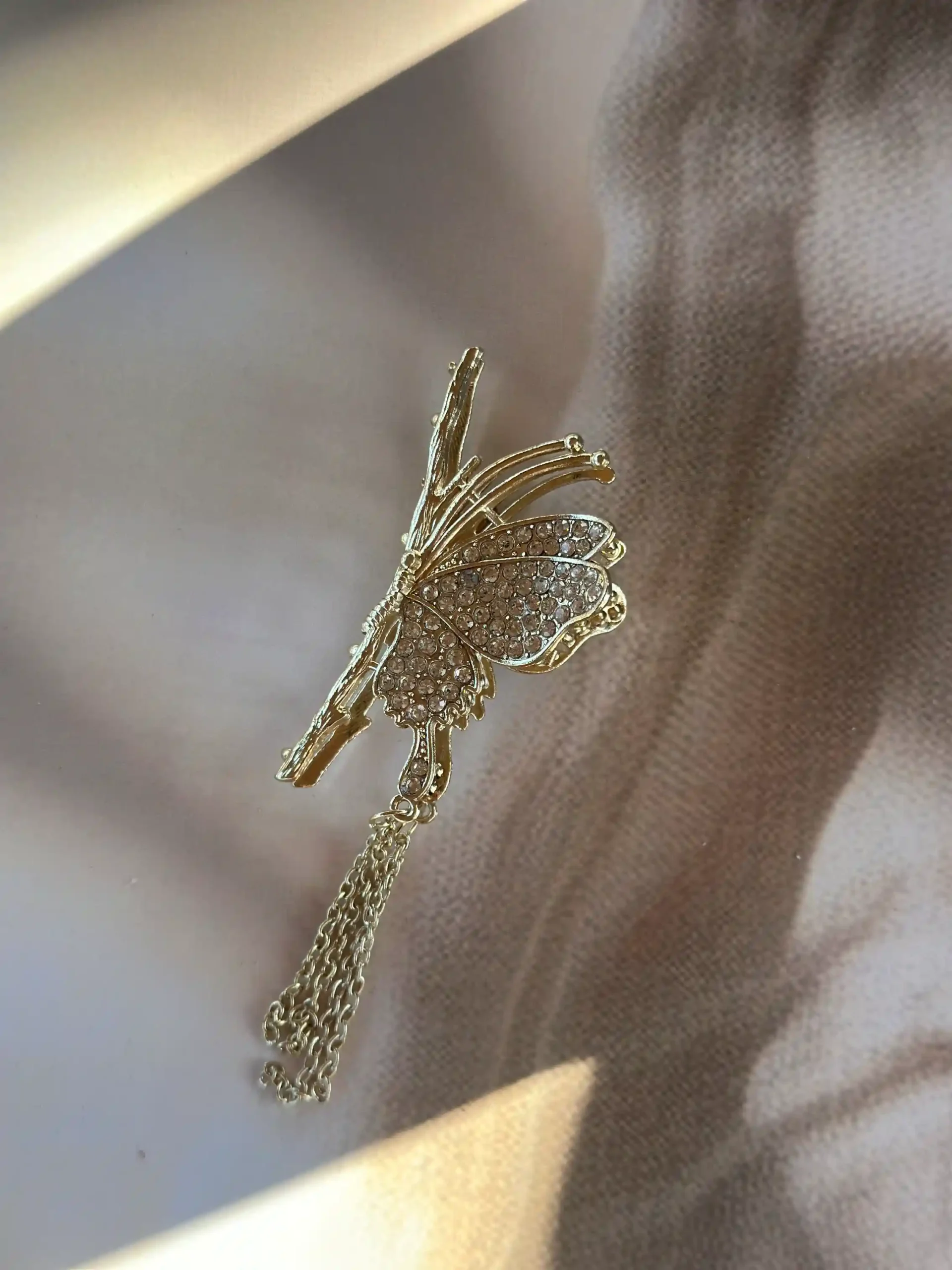 An elegant butterfly-shaped hair clip adorned with delicate crystal detailing and a graceful chain tassel. Designed to add movement and shine, this piece instantly elevates simple hairstyles with a soft statement touch?perfect for when you want something subtle yet eye-catching.