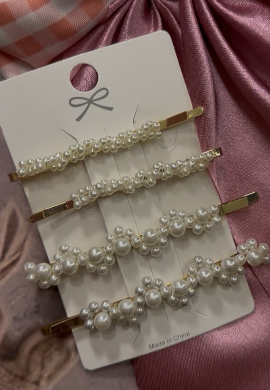 Elegant and timeless, these Pearl Line Hair Pins feature delicate faux pearls arranged on a slim metal base. Perfect for adding a soft, refined touch to everyday hairstyles or special occasions. Wear them together for a layered look or individually for subtle styling.