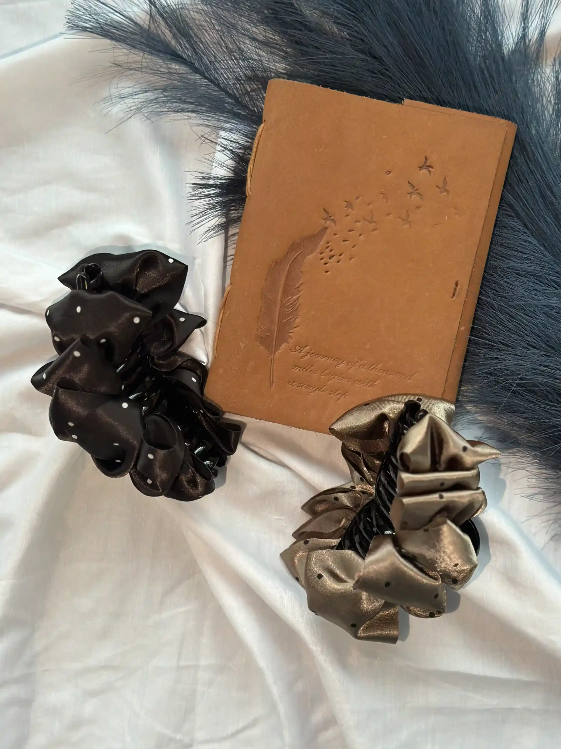 The Polka Luxe Scrunchie Claw blends classic polka dots with a soft satin finish for an effortlessly chic look. Designed to give the comfort of a scrunchie and the grip of a claw clip, it?s ideal for quick buns, half-up styles, or low twists?perfect for everyday elegance with a touch of detail.
